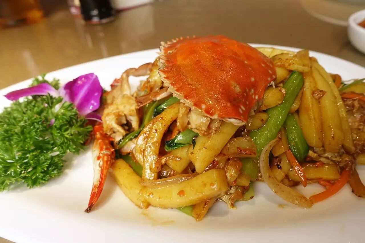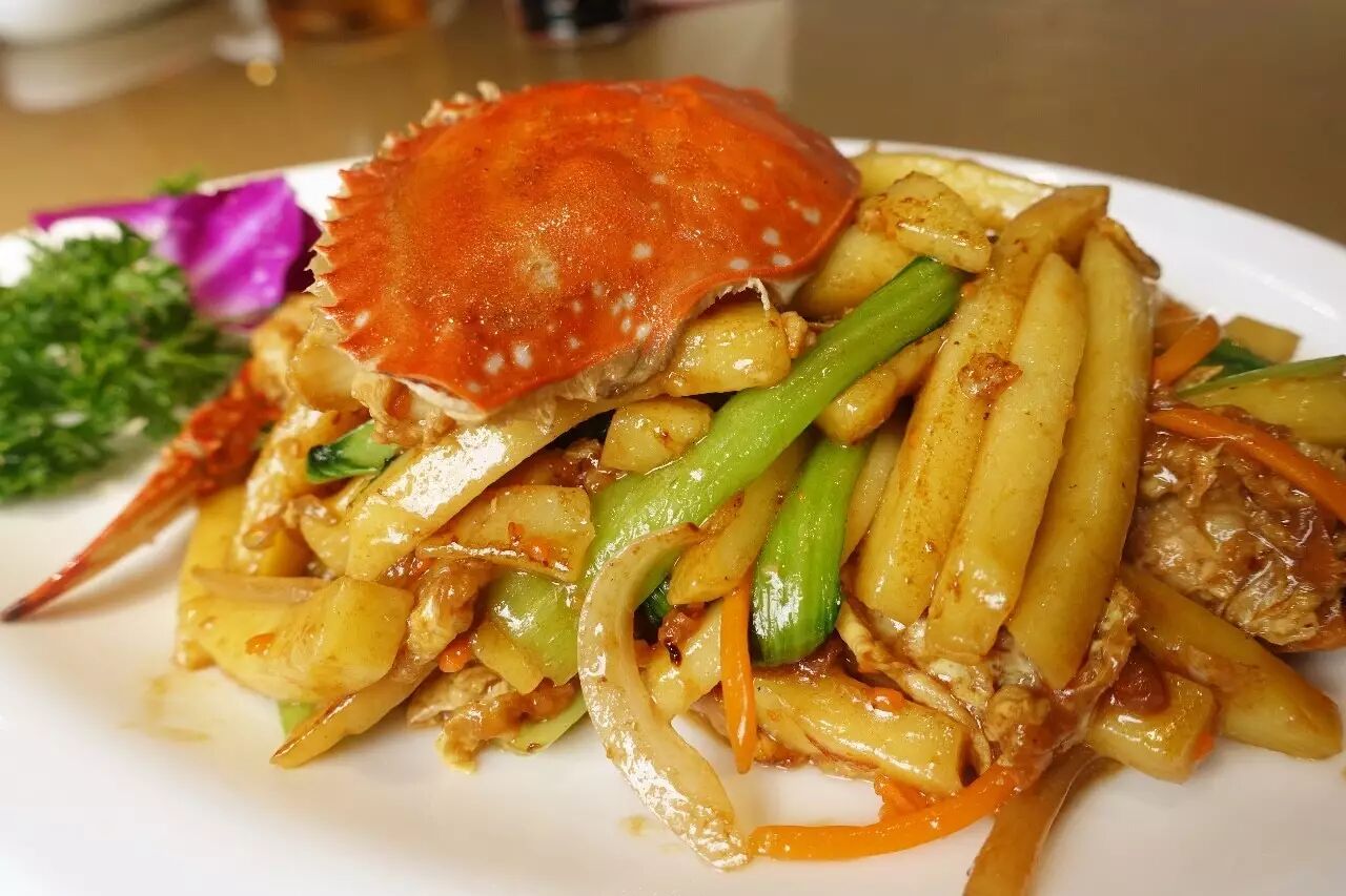 与梭子蟹炒年糕类似