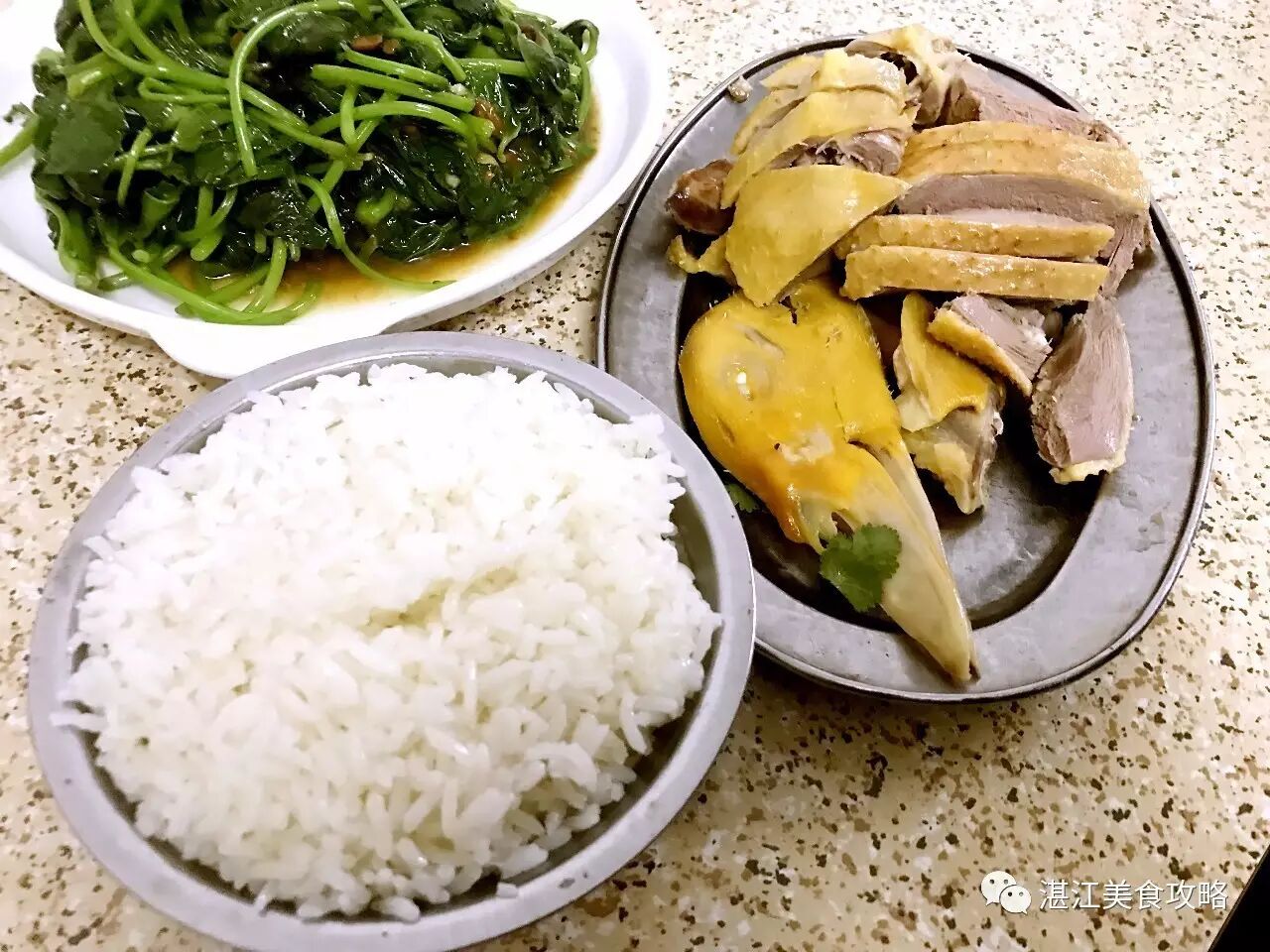 湛江本地人做白切鸭一重选鸭,二重煮鸭,三重配味。所选鸭均为本地细骨农家鸭,绝不用饲料鸭和大骨鸭;煮鸭要求慢火煮浸,熟至八九成即可,煮后的汤再煮成油饭,蘸上酱油,鸭肉细嫩结实,油饭也透着阵阵的鸭香味。