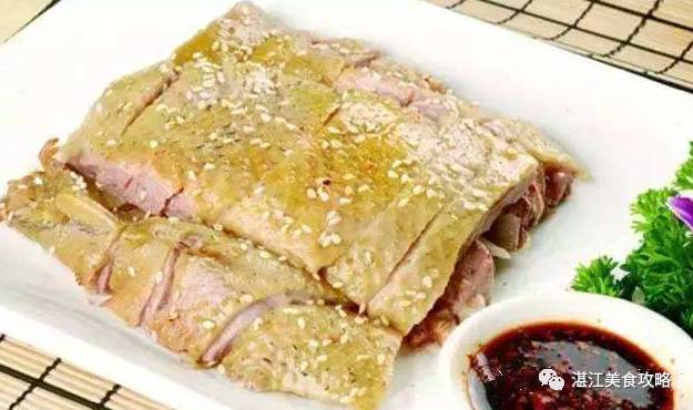 湛江东海岛的白切鹅独具浓郁的地方风味,由于其体型大、食性广、耐粗饲,能采食大量青草和粗饲料,肉质天然,质色金黄,取食则味美酥香,不逊色于粤菜中的白切鸡,且做法与白切鸡也较相似。
