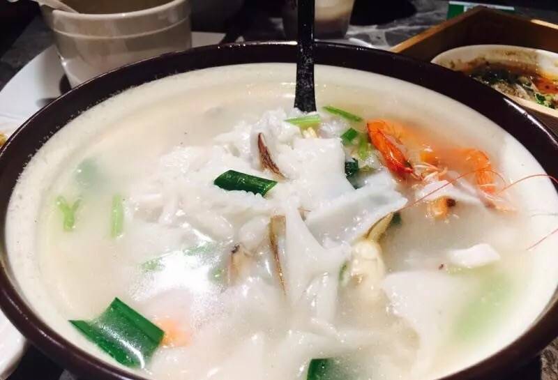 传统荔枝肉、南煎肝、姜葱炒蚬子、蒸长乐梅花黄瓜、紫菜滑肉汤、福来拌面、炒时蔬