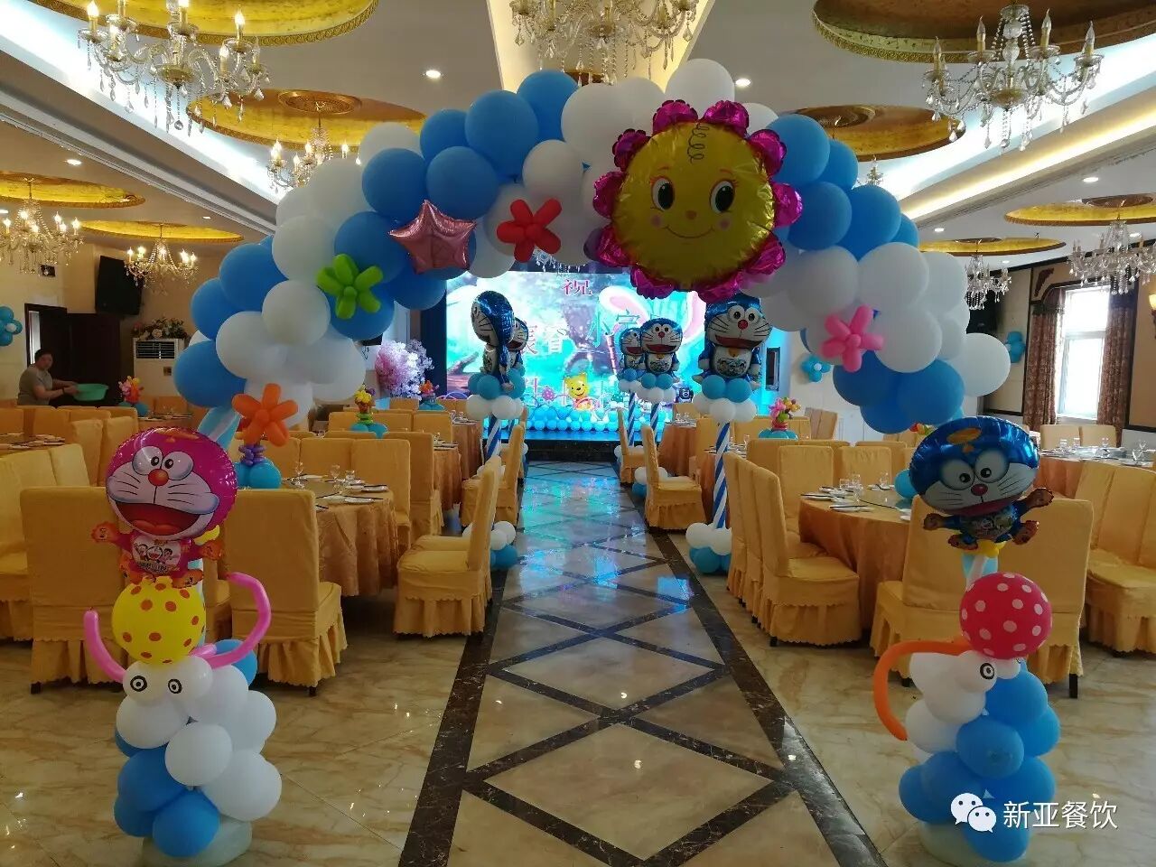 新亚大酒店20桌多功能厅儿童生日宴场景