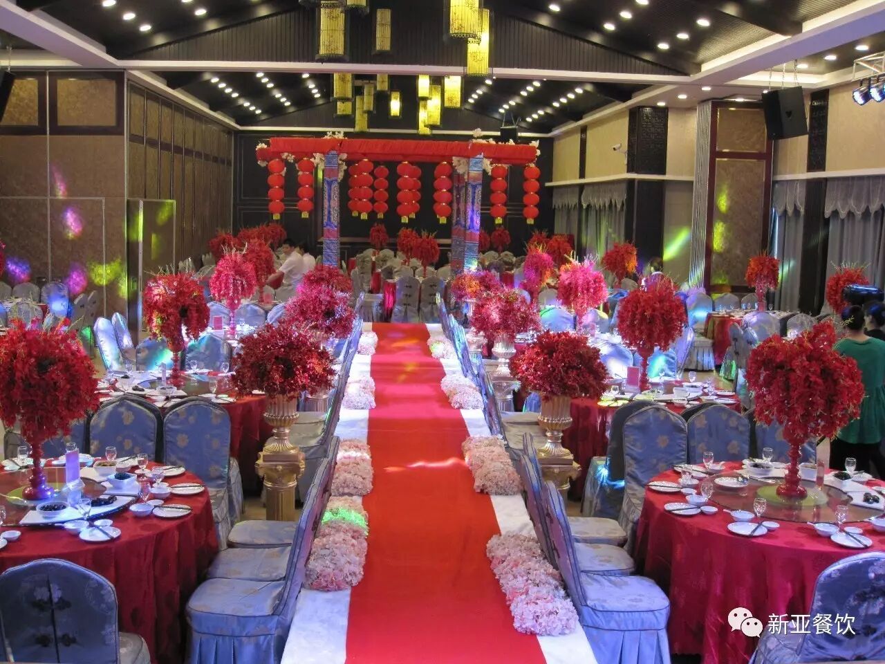 30桌无立柱大厅布置的中式婚庆场景