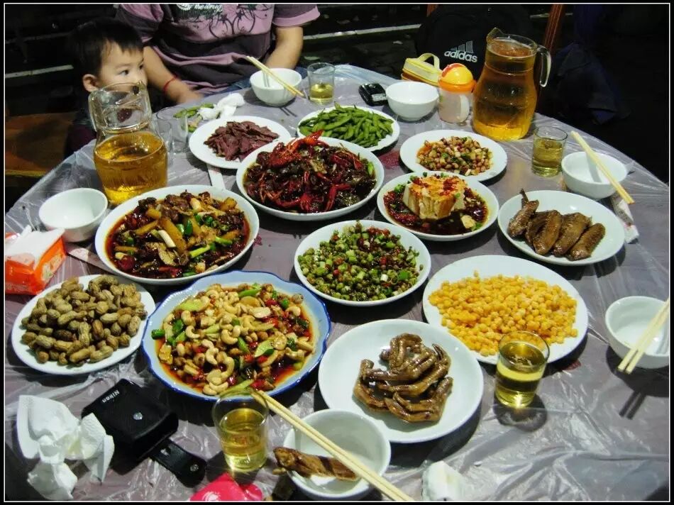 三五个朋友围坐在街头院坝,点上两瓶冰啤酒,啃点卤翅膀、路兔头,再来两盘毛豆和花生,慢慢剥来吃,也能撩起膀子吹几瓶“雪花”,这是成都人享受生活的一种方式。