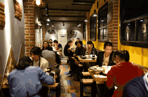 粉粉们排起长队,只为了体验这一口骡马市旁的彩虹冷锅鱼味!