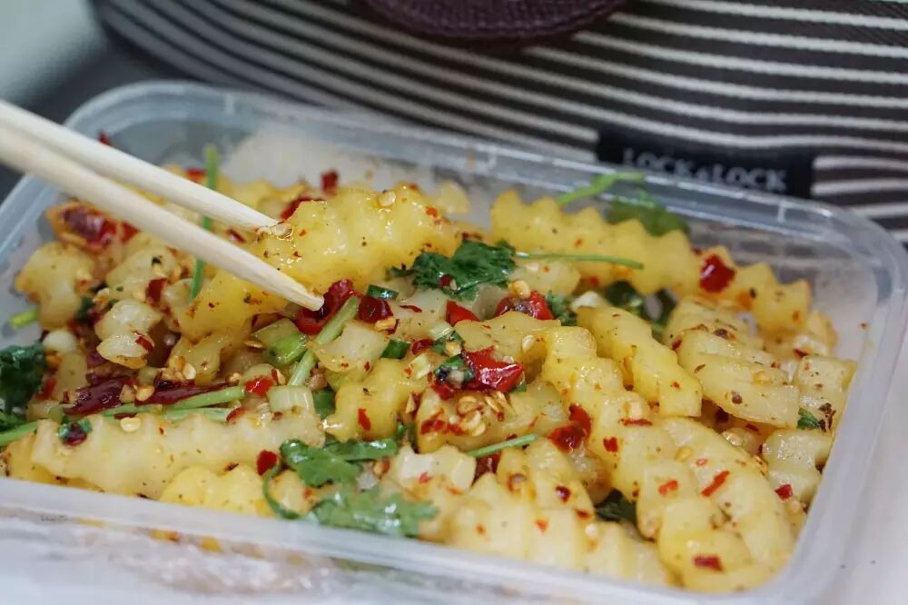 狼牙土豆蛮辣的,主要是那个辣椒面的缘故。土豆本身很好吃,绵中带脆,不油。把辣椒去掉之后真的不错。