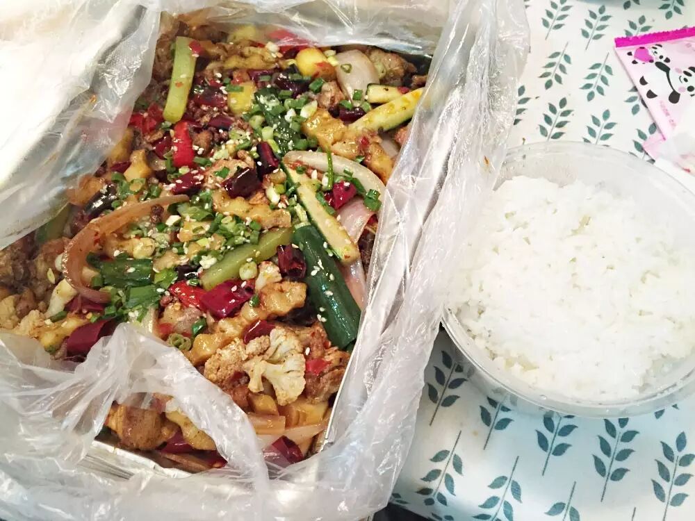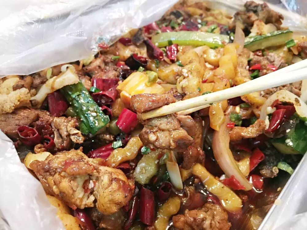 这家还是成都有名的一家干锅,生意超级好的!但是这次点的外卖,送的慢就不说了;用很重的料去炒,都掩盖不住那股不新鲜的肉味道。
