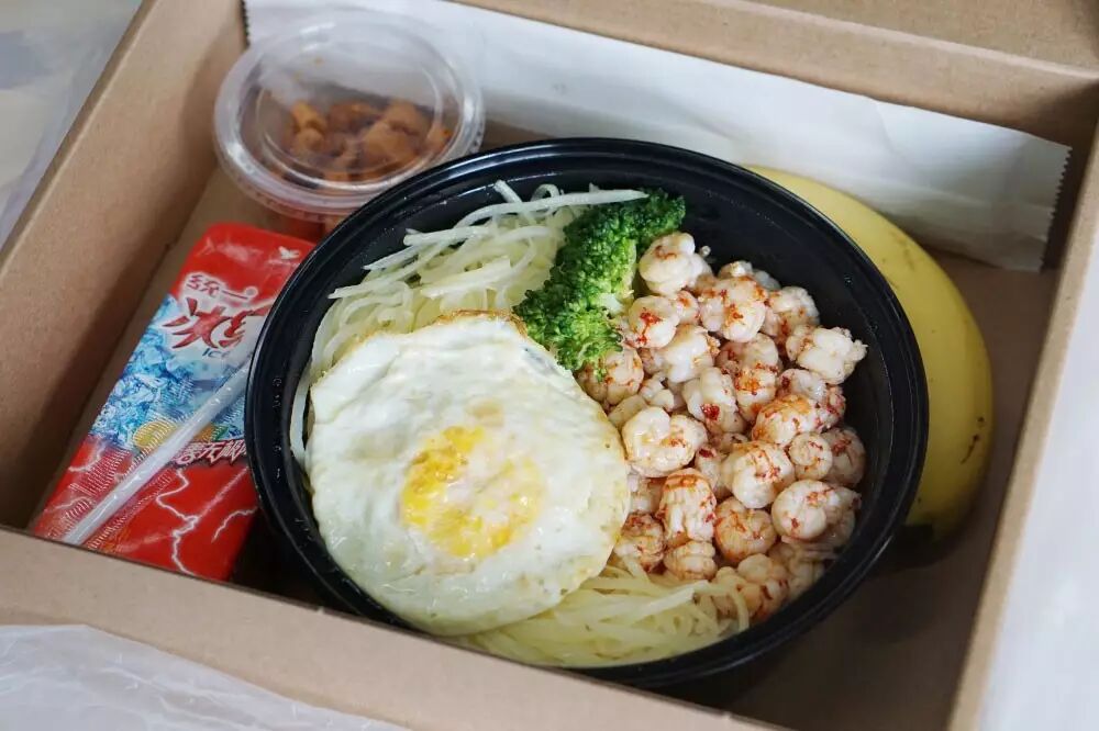 都是主菜+土豆丝+煎蛋+2坨西兰花+米饭+一瓶饮料+一根香蕉。总体吃起来还是偏清淡的,油用得不多。