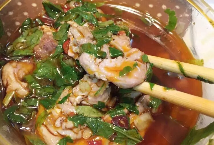 鸡肉是用的乌鸡,还多紧实的,肉也有好几块。配菜不多就黄瓜和芹菜~辣fer fer的,下饭。