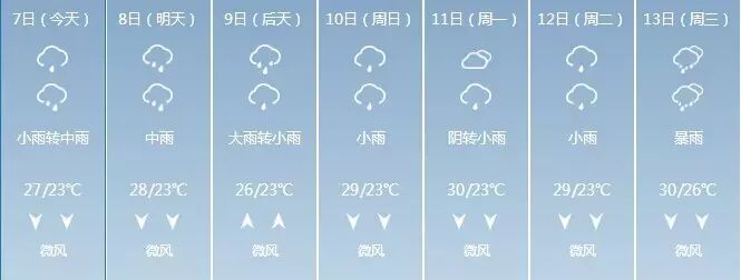 and 不要以为今天成都雨停了你们就可以出切野,这是未来一周的天气预报: