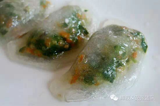 粉粿用来包馅的薯粉皮,煎后不软不粘不焦皮,是用生粉加水捏成,传统做法中,馅料是用各种蔬菜,叉烧、虾米、蘑菇,花生等配料调配而成。花生需烤熟撵碎备用,叉烧则切粒,所有食材搅拌在一起后,往里加盐、鸡精、猪油等。 而对于水晶式薄皮,做起来可得费一番功夫,得先将澄面和匀加盐,用开水烫熟后,反复揉搓之光滑,寻常人实在难以做得来,而后将包上陷料,放置蒸笼即可。