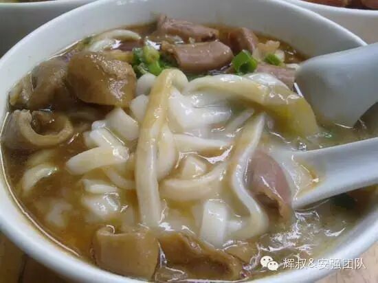 粿汁片与粿条有些类似,似乎是宽版的“粿条”,但粿汁吃起来比粿条还要嫩滑可口,而它的绝配有二:葱珠朥和卤料。新鲜的葱沥干水分,切成丁,热锅下油后小火把葱丁小炒至呈黑色,就是香腾腾的葱珠朥。卤汁则一般是秘制的,把洗好的材料放入锅里慢火卤滚,发出浓香味道后再把它们捞起,放进另一个卤锅里,使卤料更加入味。传统的卤料包括猪肠、猪皮、卤肉、卤豆干、卤蛋等。