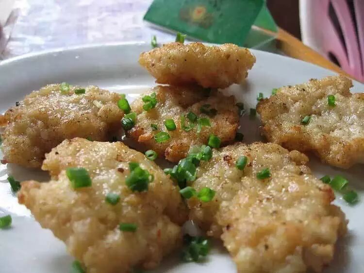 钵仔糕一般都是甜的,由红豆、绿豆或马蹄等等做成,而唯独阳春的“钵仔糕”是有咸的吃法,阳春当地人都非常喜爱这一种食物,阳春钵仔糕原始做法是通过研磨米浆再使用蒸局的方法制作而成,蒸熟后可以添加蒜油和酱油调味,后期通过改良添加上了芋头和芝麻令到钵仔糕风味更为突出。钵仔糕一般都是用一个小钵仔装着,吃的时候用根竹签界开方格状,就可以签着吃了,又便宜又好吃,来阳春旅游的朋友千万不要错过这么地道的小吃!