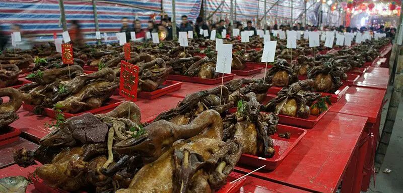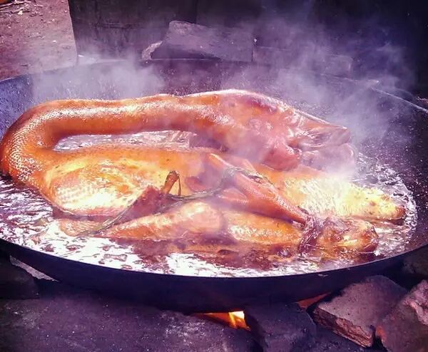 每年三月廿三的妈祖诞辰是潮汕人拜祭“天后娘娘”的重要日子,很有乡村都有“赛大鹅”的习俗,赛的当然是潮汕卤味当中的极品——狮头鹅,狮头鹅因其头部突起状若狮头而得名,其体大肉嫩,大者每只可达三四十斤重。