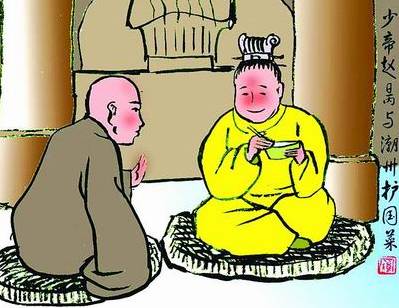 逃难中的小皇帝饥饿难忍,喷啧连声称赞好吃。住持说:贫憎能助皇上解除饥渴,重振军威,保大宋江山安然无恙,足矣!阿弥陀佛!