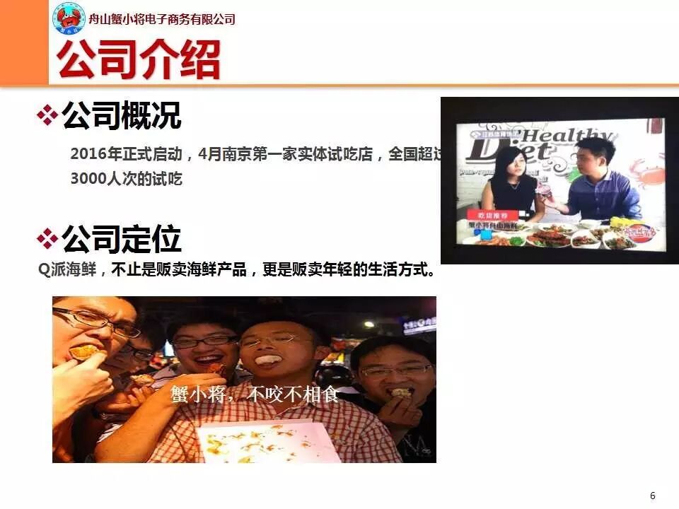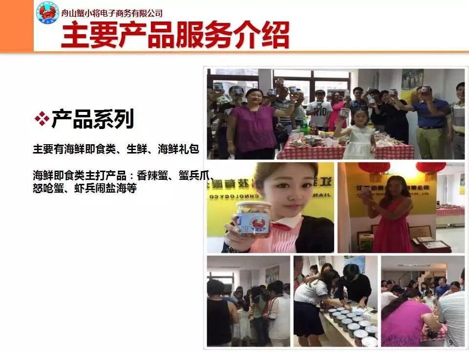 产品系列:海鲜即食类主打产品:香辣蟹、蟹兵爪、怒呛蟹、虾兵闹盐海等