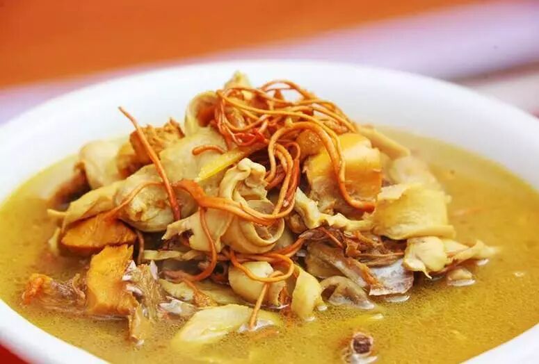 活宰剁块搁沸水里小火慢炖两小时,揭开锅盖是咕哝着的油泡子,用力戳也不破,好不容易压破了,倒是溅了一脸油,确也香得馋人。老母鸡鸡肉很柴,猪肚脆而弹口,一口下去,像是木耳肉片,肉不乏味了确是爽口。 汤水是浓稠的,再加入一些党参、红枣、枸杞,口味上变得有点冲又有点甜。