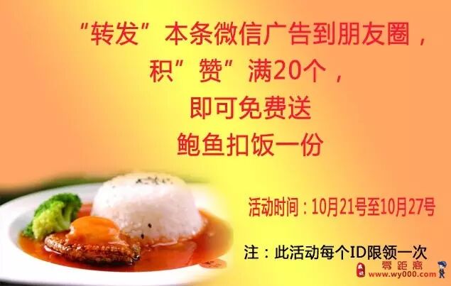 凡参加下图活动的小伙伴们,到店消费,即可“免费送”鲍鱼扣饭一份!