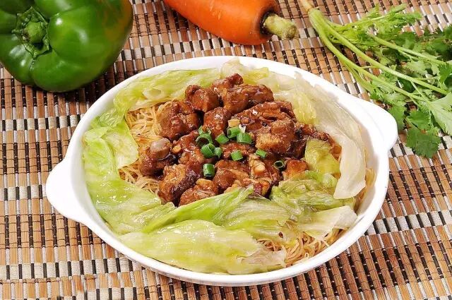 3. 热锅油,把菜先炒一炒,然后加米粉一起炒一会、再加入两小勺味达美翻炒几下就好了。