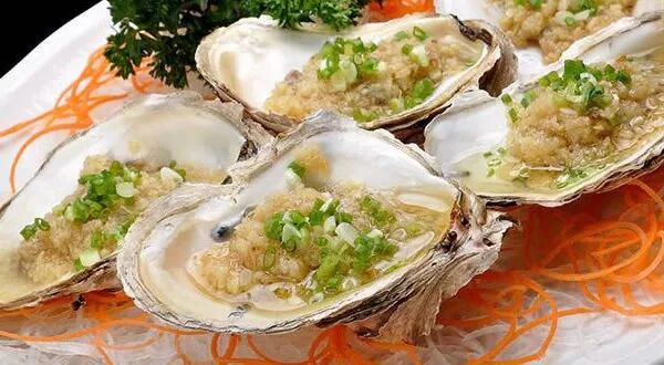 炭烧生蚝:湛江地理位置优越,养殖出来的生蚝肉质鲜嫩肥美,口感清甜无渣、爽滑,可制作多种多样的生蚝食品。由于炭烧生蚝的做法非常简单,只需将蒜蓉、酱等佐料放入刚刚撬开的生蚝内,再直接放到火上烤熟即可,这样既保证了生蚝的鲜味,蒜蓉又能有效地去除蚝本身的腥味和臊味,实为不可多的美味。