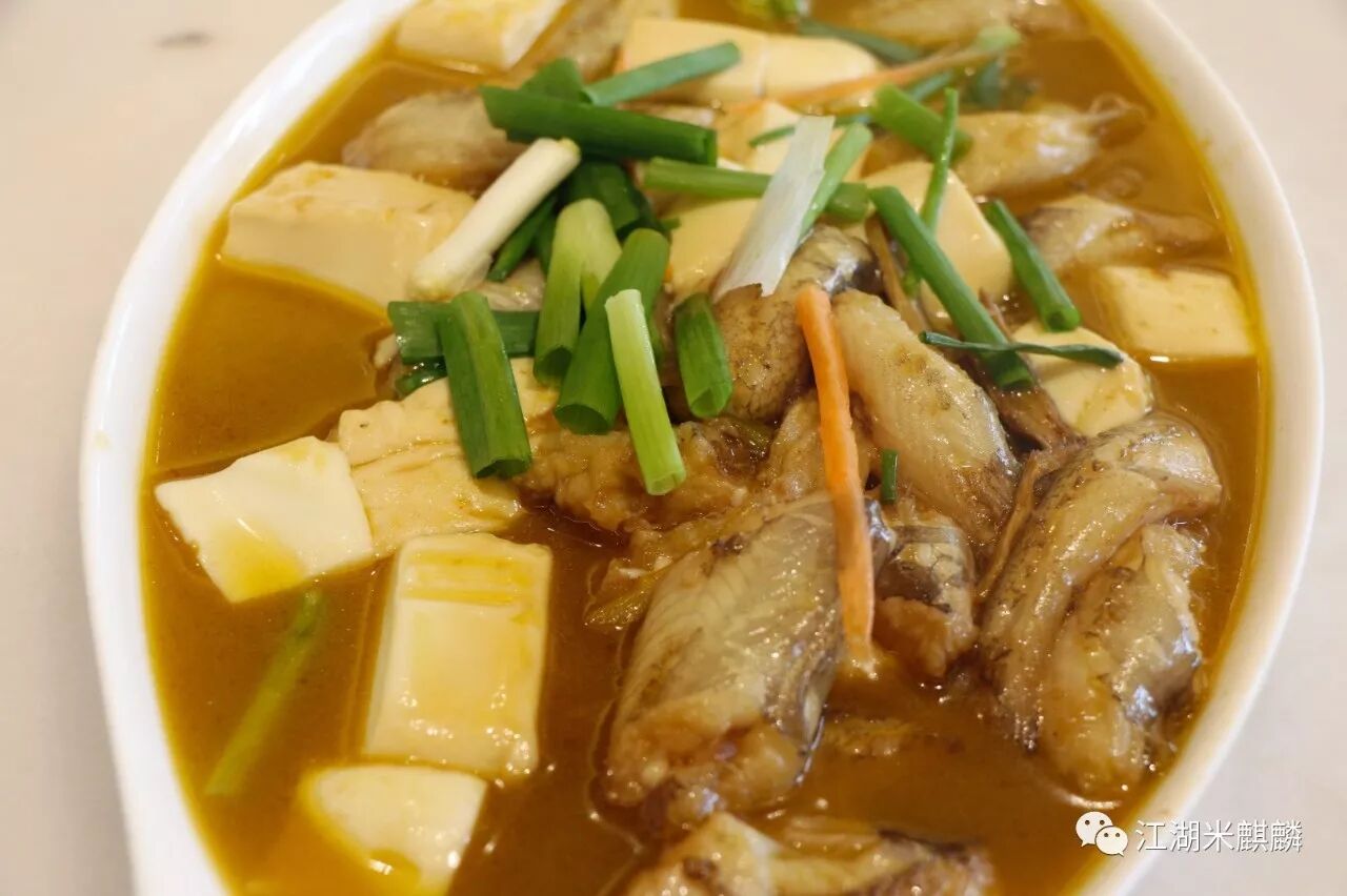 最后上桌的是小龙鱼烧豆腐。这道菜一个字总结就是:嫩!豆腐嫩到勺子一碰几乎就碎,鱼肉嫩到入口即化,一点都不夸张,整道菜在咖喱的调和下味道更加浓郁诱人。每次用勺子舀一块豆腐,一块鱼肉,加点汤水,小心翼翼像是搬挪艺术品一样送入嘴中,舌头一压,豆腐和鱼肉顷刻化掉,混着咖喱咽下,吐掉鱼骨,着实美得很啊。