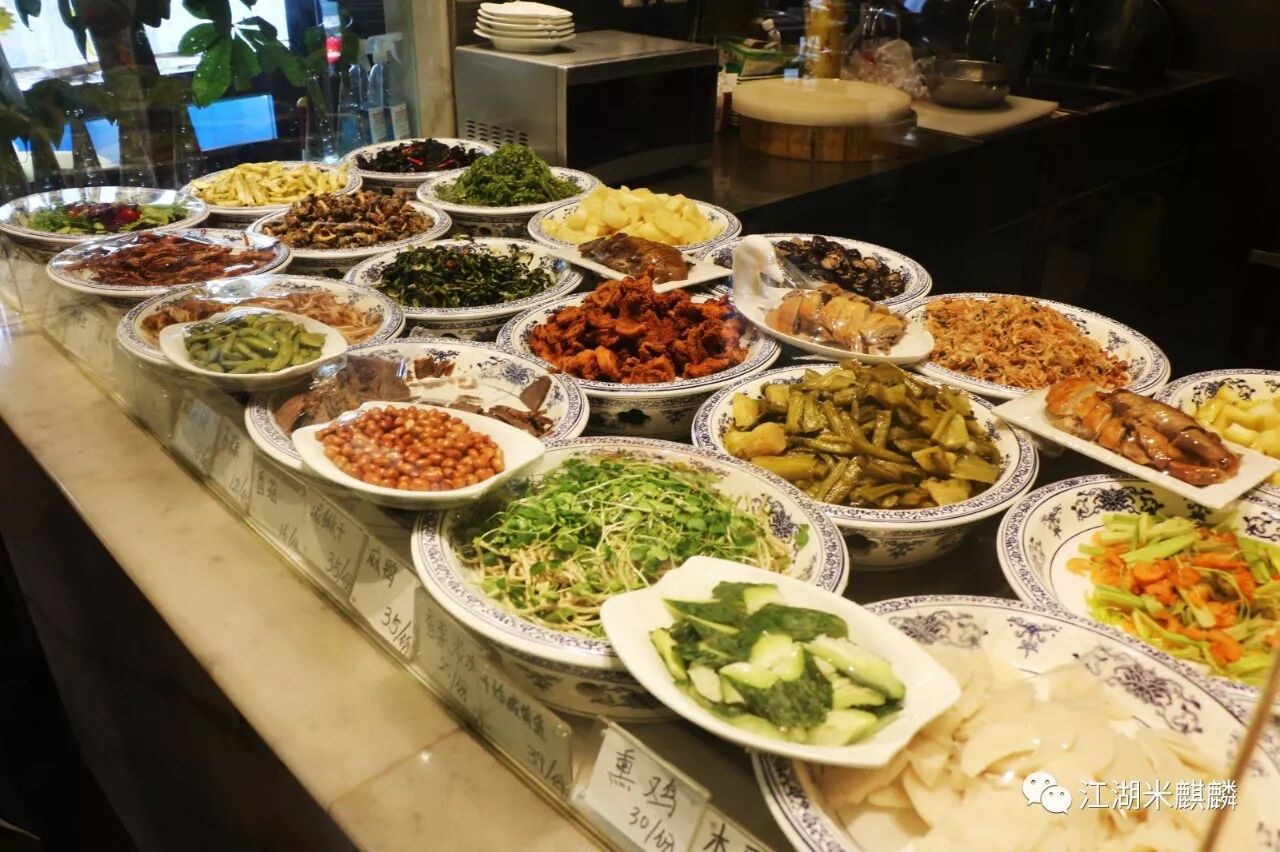 冷盘装在一个个大盆里单独放在柜台上,各色菜式非常引人注目。