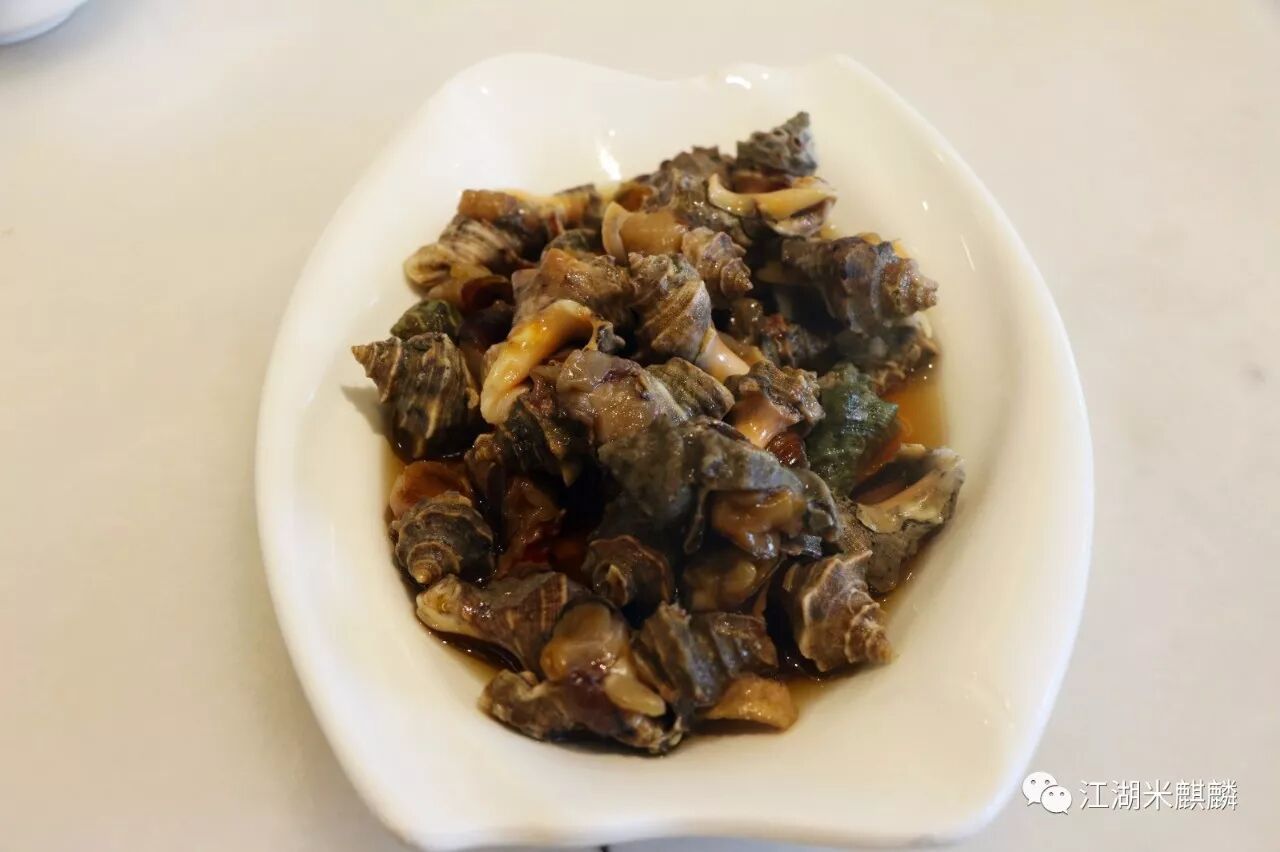 冷盘很快上桌。点菜时服务员反复强调辣螺是生腌,不是所有人吃得惯...当时脑子里全是菜压根没听进去,尝了一口才真正感受到这话的意思。入口的刹那一股腥味在鼻子和嘴里同时蔓延开来,非常浓烈的海的味道,紧接着咸味和辣味努力的将腥味压制在一个范围里,三方势力彼此掣肘,像在嘴里来了一次华山论剑。嚼过之后,新鲜的螺肉紧实饱满,个个跟每天举过铁似的。吃的过程既挣扎又享受,吃完却还想再来一个。