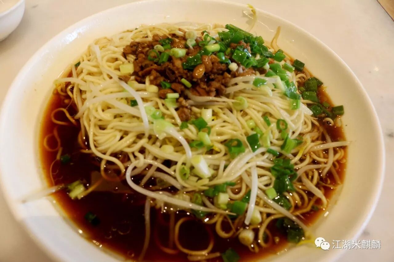 温州拌面其貌不扬,卖相一般。看上去只是一般的葱油拌面,吃起来也确实只是葱油拌面,但令人惊喜的地方在于,葱油好似用了做过鱼的葱油,有鱼的鲜味,有葱烧鲈鱼的口感,非常香;面也弹性十足,吸溜一口,顺滑的面裹着鲜香的葱油在口中碰撞融合,真的吃成油嘴滑舌。