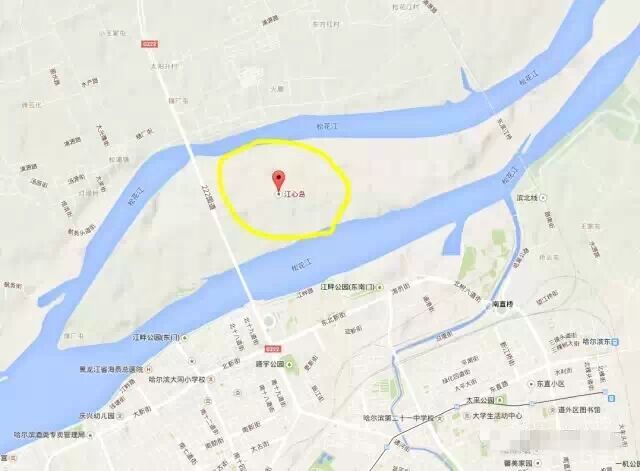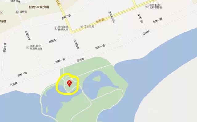 从道外走江畔路在松浦大桥右转,右侧即是江心岛。