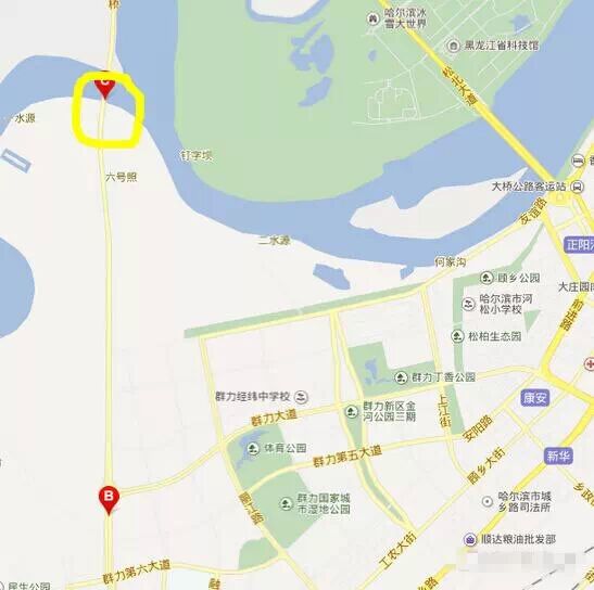 走群力三环阳明滩大桥,过了松花江就是。