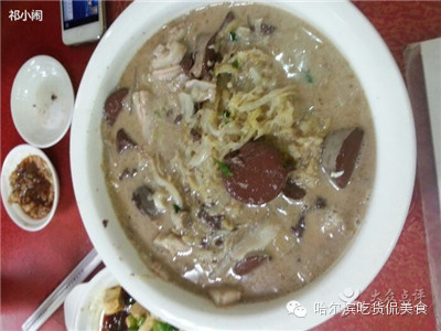 餐厅简介:“太太太有名”的饭馆儿。店堂内“木桌子木椅”,四处“热气腾腾”。杀猪菜“很对东北人口味”,“全套猪下水”,“不肥不腻”。血肠也“非常地道”,“滑嫩可口”。菜码“傻大傻大的”,人多比较合适,否则点不了什么。1楼大堂“晚上有表演”,“二人转”呀,“俄罗斯歌舞”呀,加上满屋子东北口音“粗声大嗓”地来回劝酒,那气氛,没说的!