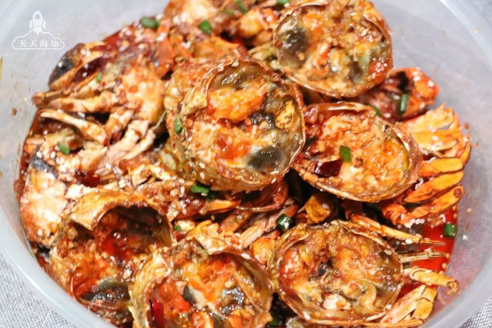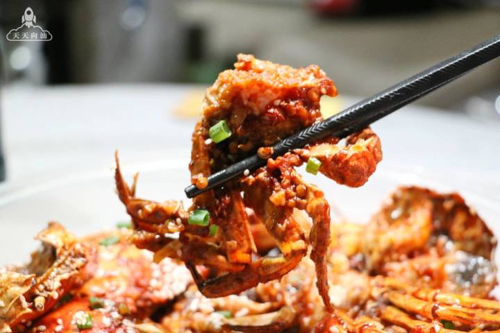 ▲螃蟹油炸爆炒后浸在浓郁汤汁里面,辣椒的辣,麻椒的麻,酱汁的咸,油焖的香,连蟹壳一起嚼,越嚼越香,越吃越入味!
