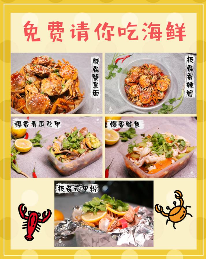 即有机会免费获得吃虾研究所招牌海鲜