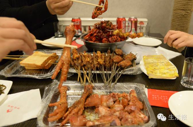 涮毛肚、烤羊肉串、烤蚕蛹、烤羊蛋