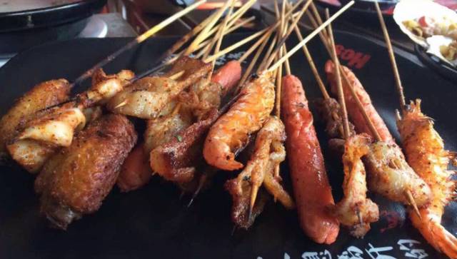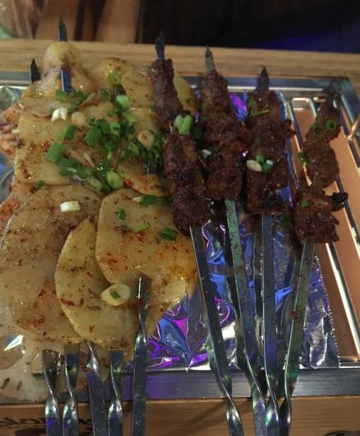 看到这么大的签签是不是有点懵逼?但是,火盆烧烤吃的就是这个感觉!相信我,粗犷才是这里的主题。