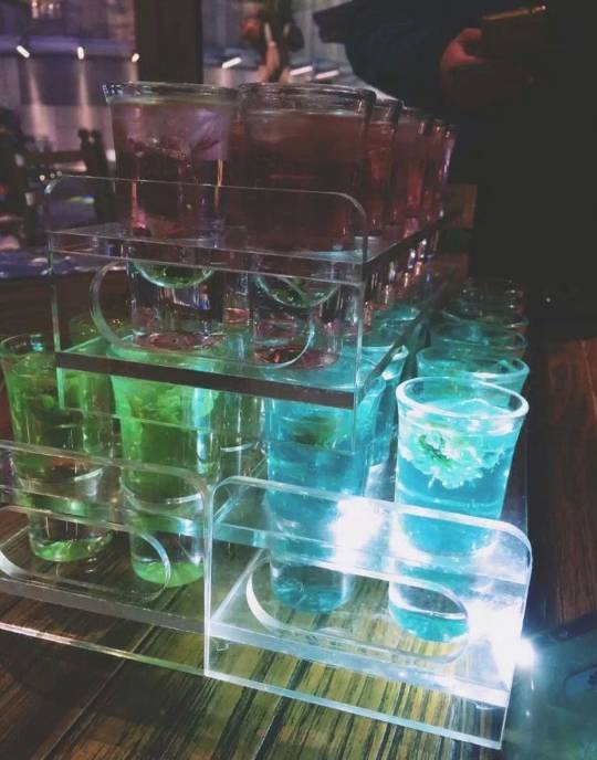 有很多酒吧特那种一排的酒。而什么味儿什么颜色的都有,非常适合朋友一起吃一起喝一起看球。