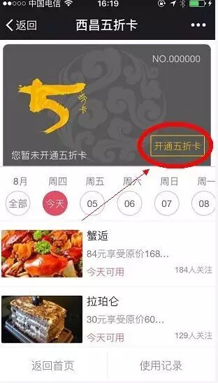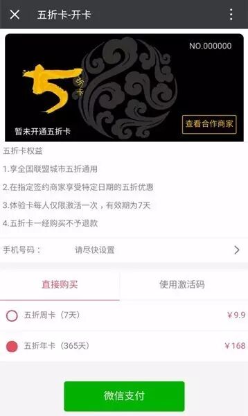 2、持有5折卡的用户凭个人微信绑定后进行核销,商家将使用核销码与消费者进行核销,避免冒充给商家造成损失。