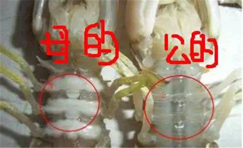 母的形体较小,脖子较细。透过灯光可以看见母的背部中间有一条明显的实线,是虾籽映衬所致,而公的则通体一种颜色。