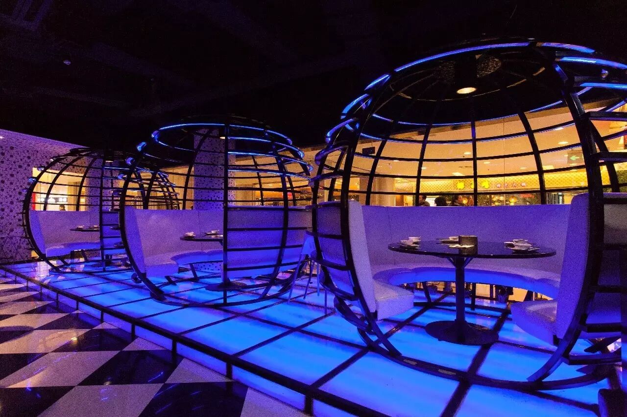 非同寻常的就餐体验,科技感超强的镂空圆形座椅,自带蓝光魔光,瞬间穿越到外太空,哈灵哦!!随便一拍都是大片即视感~