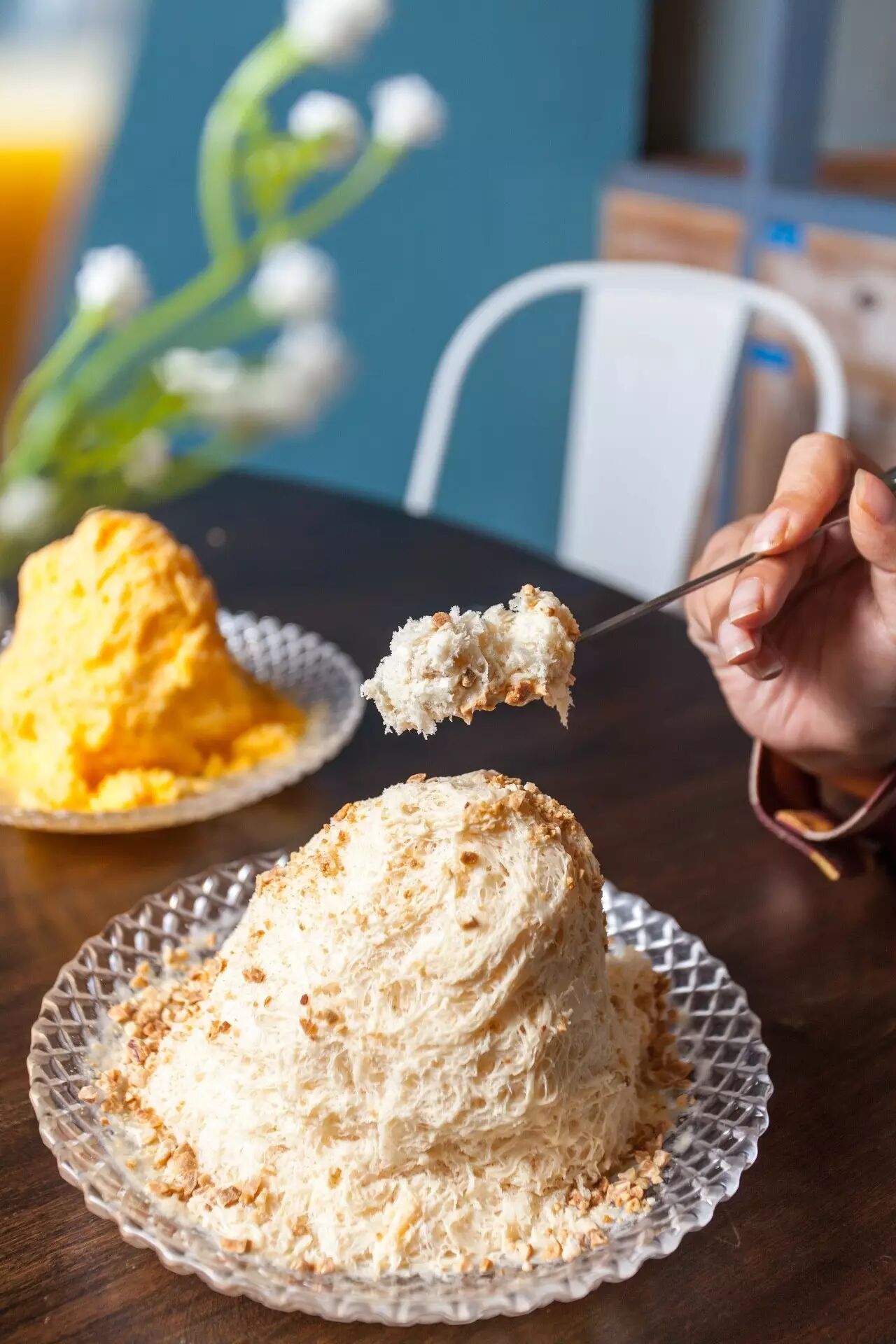 “花生绵绵冰”这名字可不是白取的,这一大大份沙冰像棉花木须一般绵密,清凉爽口,入口即化都无法形容出它细腻的口感,仿佛在云端漫游,绵软的不行!