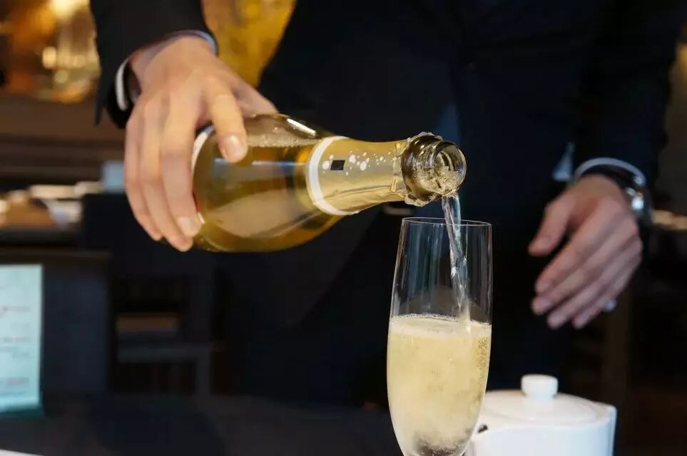 原来是欧巴手上拿着的金色Beringer汽泡酒太晃眼,正晃过神来,欧巴修长的手指已经启开軟木塞,將金黃的酒液缓缓注入杯中,大约是汽泡酒的香气太迷人,整个味蕾都被打开了!随后帅气欧巴露出迷人的微笑,且轻言一句“请您慢用”,感觉还没喝就已经醉了…