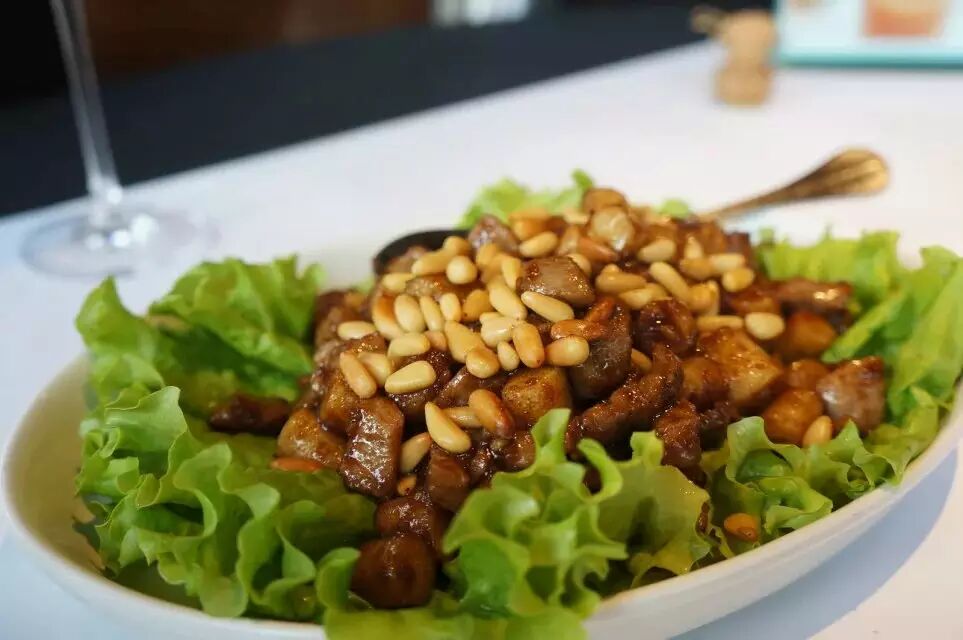当然这里也为不爱吃辣的宝贝们准备了专属菜——“松子年糕牛肉”,特选年糕和腌制牛肉,佐以特制酱料煨煮入味,再加以炸过的松子,更添香味,牛肉口感柔嫩,用勺子舀着吃才过瘾哦~