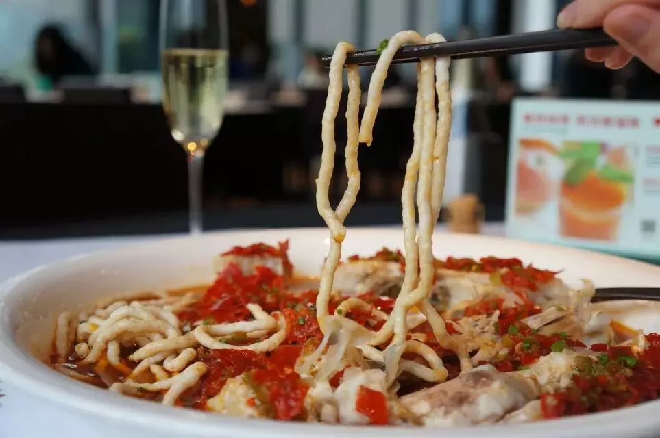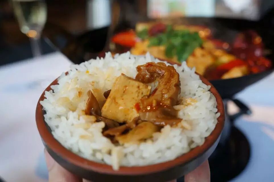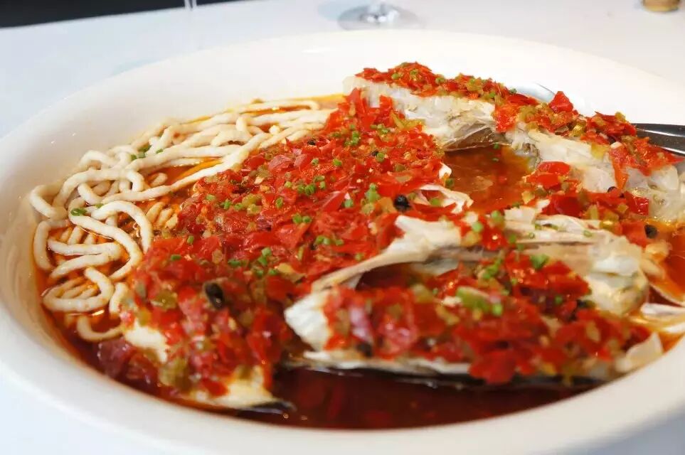 有肉吃,当然还要有鱼才过瘾吧!那么这道“霸王鱼头”也是不能错过的,美人椒细细剁碎,覆盖在极其细嫩的鱼头上,夹下一块白嫩鱼肉蘸点汤汁,辣、鲜两种滋味同时在口腔中迸发,超级赞!