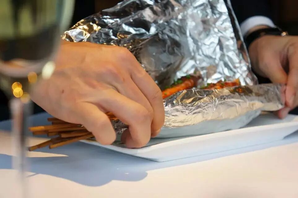 正洋洋自溢的时候,长腿欧巴又过来了,这次闪到我眼的是一盘锡纸包裹的美味~