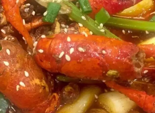 麻辣味十足,龙虾新鲜肉质紧实,很香有回甜味,下面打底的菜品也很入味,特别是黄瓜,又清香又麻辣,味道很特别。