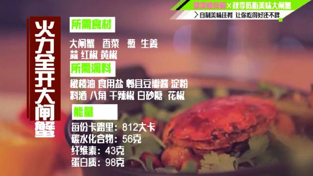 俗语说:“秋风起,蟹脚痒,菊花开,闻蟹来。”秋天正是螃蟹黄多有满之时,所以有食家言“秋季吃螃蟹味最隆重之事”。而对于想要减脂的妹纸们来说,螃蟹更是快速甩掉脂肪的的减重利器,螃蟹肉的热量低,几乎所有热量都来自蛋白质,丰富的蛋白质也是减重妹纸们不可或缺的重要营养成分。SO,放开你的胃,让火力全开的大闸蟹秋来满足你无限的味蕾享受吧!1.首先将买来的大闸蟹仔细的刷干净,然后去除底部的壳,用手掰开顶部的蟹壳,去除蟹鳃和蟹心。处理完后,对切半,放入少许盐,适量料酒,让其腌制30分钟。2.将芹菜去叶,切断。芹菜含有蛋白质、脂肪、碳水化合物、纤维素、维生素、矿物质等营养成分。芹菜不但营养丰富,而且有药用价值。3.接下来就是将黄椒与红椒分别切成圈状,备用。辣椒含有丰富的维生素C,对口腔及胃肠有刺激作用,能增强肠胃蠕动,促进消化液分泌,改善食欲。5.下一步就是煎炸了。锅热后,放入橄榄油,然后一个个放入锅内煎炸。两面翻动,10分钟后,就可以出锅了。这个时候,剥上几颗大蒜,放入油锅中爆香,盛出备用。6.接下来就是焖煮了。在油锅中,放入少许豆瓣酱,翻炒,放入干辣椒、八角、花椒,姜末、葱碎、一起翻炒煸香,然后再放入切好的芹菜段、红椒青椒圈一同翻炒,然后放入今天的主材大闸蟹,放入白砂糖,生抽,慢慢焖煮5分钟,盛出锅,放上些许香菜,OK,火力全开的香辣蟹就出锅啦~1.首要任务就是要将大闸蟹清洗干净啦!刷洗干净之后呢,然后放入盘中,放置在沸腾的开水中隔热蒸熟,蒸煮20分钟。2.接下来就是调味料的制作啦!切姜末去除大闸蟹的腥味~香菜尽量切碎,小葱切碎备用,然后放入陈醋、香油一同搅拌入味。OK,简单的清蒸大闸蟹就制作完成啦!吃蟹最讲究时机。中秋前后,膏肥肉美的大闸蟹是餐桌上的尤物,不必错过这样的好时节。在家动手就可以将最美味的料理华丽升级,赶紧把两种减脂又美味的大闸蟹的美食做法收入囊中,然后喊上亲朋好友,明天的中餐好好的大露一手吧~芒果tv客户端上搜索 "321动起来"观看完整视频