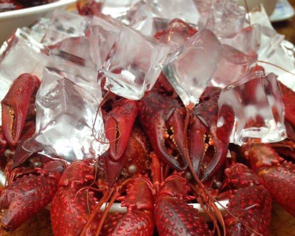 以龙虾,蟹为主的江湖菜,我觉得跟其他江湖菜比起来还是很有创意的撒,比如这个虾,红辣辣配着冰,简直就是冰火两重天嘛。