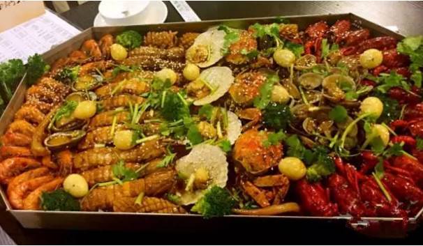 环境很特别,还有驻唱歌手。一上桌那股香味就已经让人流口水,螃蟹、小龙虾、爬爬虾、鲍鱼、扇贝、生蚝、三文鱼应有尽有…