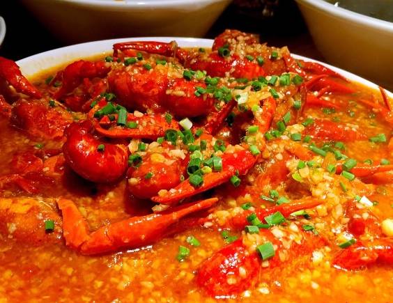 因为是每天从湖北潜江空运的鲜活小龙虾,为保证新鲜所以每天只供应80斤,所以去之前记得提前订位。剪头开背,入味得很,份量也很足。另外,最让我念念不忘的还有麻辣茄子,真是必点的特色菜,好吃到爆。
