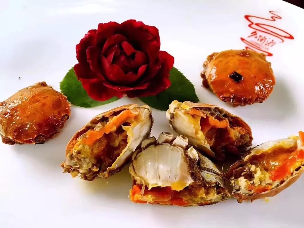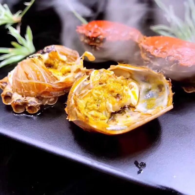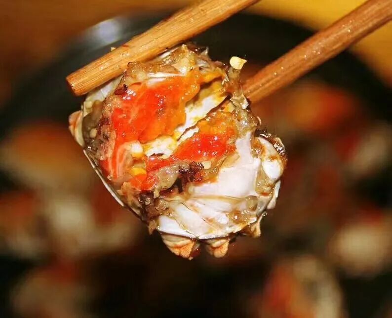 香辣小闸蟹只留蟹身,蟹黄鲜美,肉质饱满。