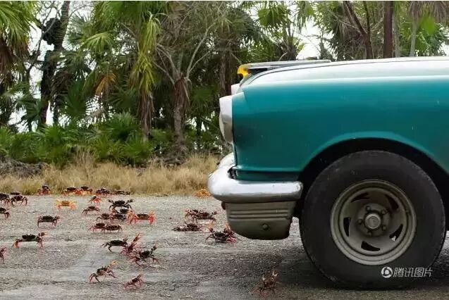对于当地人来说,螃蟹大军到来,也意味一笔好生意。许多外国游客慕名而来,他们乘坐车辆的轮胎经常被蟹壳刺破,而游客很乐意花10美元来补胎,要知道古巴人的平均月工资才25美元左右。更有意思的是,当地人补胎的工具是安全套,这在古巴价格便宜又触手可得,把它熔化之后补进橡胶里就行了。